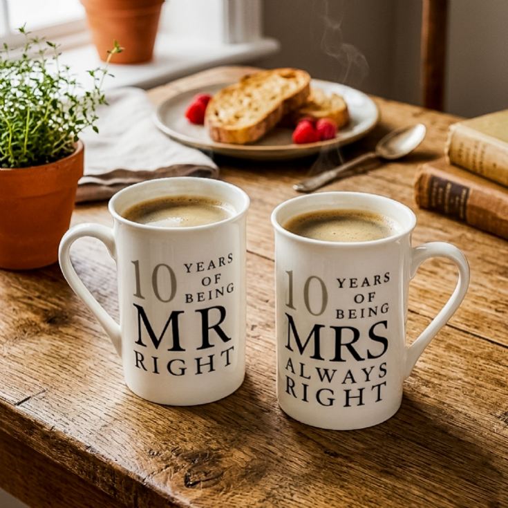 You’re right, but she’s righter. Yes, that’s right, and don’t you forget it. Celebrate a decade of understanding this fact with the Mr Right Mrs Always Right 10th Anniversary Mugs. They arrive in a gift box, making them splendidly easy to wrap up as a gift. Toast the next ten years with a cuppa in your new mugs, and here’s to decades of happiness!