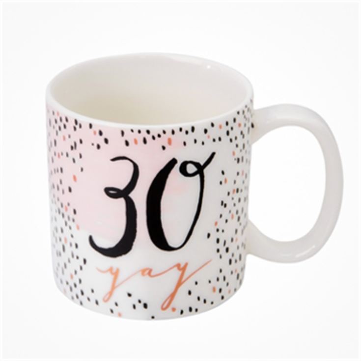 The mug boasts a contemporary and trendy design that's bound to delight the birthday girl. A Luxe pink patterned backdrop sets the stage, while rose gold foil detailing adds an opulent touch. The '30 yay' titling, adorned with the same luxurious rose gold foil, exudes a sense of joy and accomplishment.