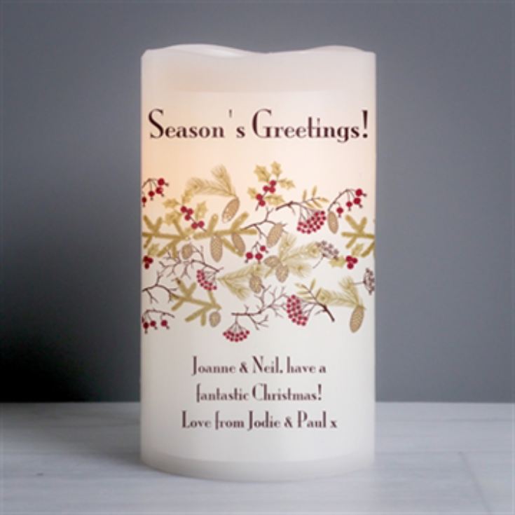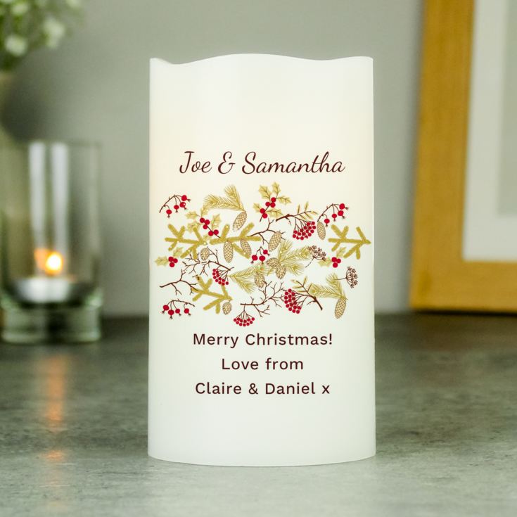 Personalise it with a message for the person you are gifting it to that will appear above and below the delicate band of holly, pine and Christmas berries. This is an elegant gift for parents, grandparents, families or friends who love festive decoration.