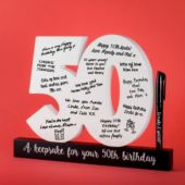 A high quality finish oak veneer wood frame. The top is engraved with " Birthday" and an age of your choice, the bottom of the frame is left free for your own personalised message.
