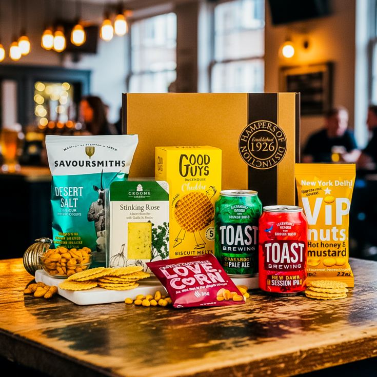 With two tasty brews from Toast Ale, a punchy garlic-infused cheddar from Croome Cheese, and a selection of gourmet nibbles such as; Hot Honey & Mustard VIP Nuts, BBQ Love Corn and melt-in-your-mouth cheddar biscuits, this box is packed with personality.