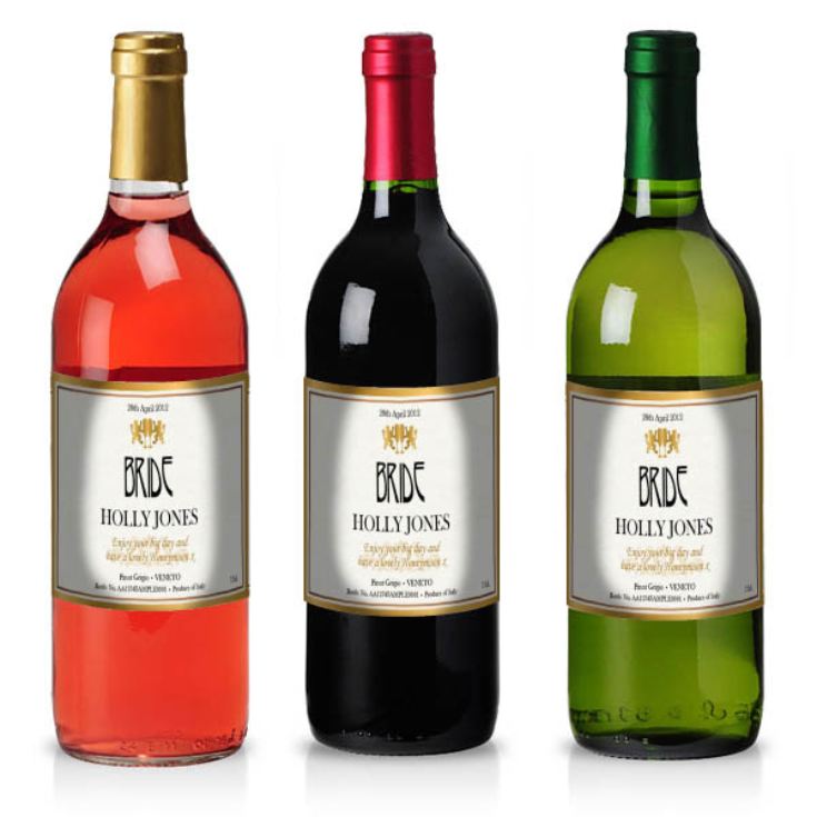 On the Bride's special day why not treat her to a wonderful bottle of champagne made even more special with a fantastic personalised label. The label is personalised with her name, the date of the Wedding and a personal message and is printed onto high quality paper before being attached to the bottle. A gift that she's sure to enjoy when she comes to drink it and the personalised bottle can be kept as a special memento from the big day.