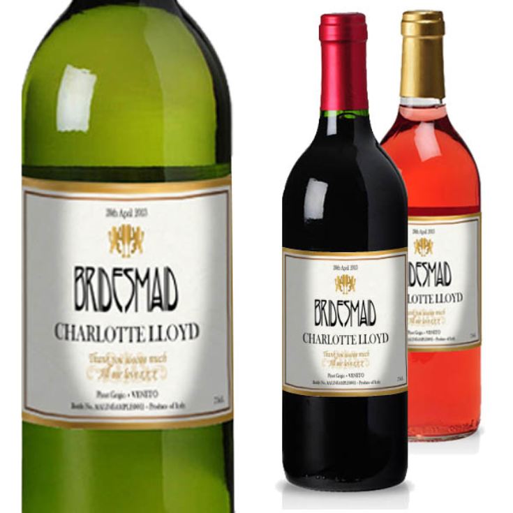 This personalised bottle of wine is the perfect gift idea to thank your Bridesmaid for all of her help and support towards your big day. The bottle is personalised with a special label which is printed with her name, the date of your Wedding and a special message before being applied to your chosen wine. She's sure to enjoy drinking this fabulous wine and even then the personalised bottle offers a lasting memento of her role in your special Wedding day.