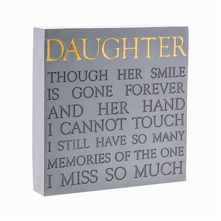 The meaningful memorial poem highlights the word ‘Daughter’ in elegant gold lettering, creating a heartfelt focal point. Its square shape and perfect sizing make it ideal for graveside display, serving as a daily reminder of love, warmth, and treasured memories.