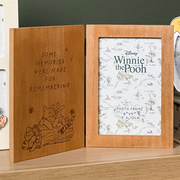 This folding Winnie the Pooh photo frame beautifully displays a single cherished snapshot alongside a heartfelt quote: "Some memories were made for remembering".