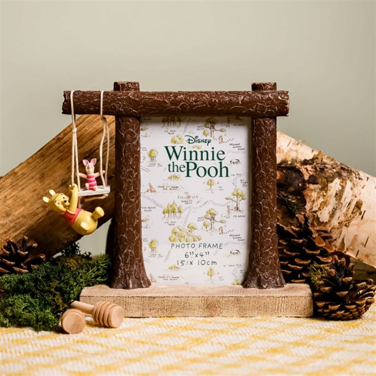 Pooh and Piglet take centre stage on this resin swing photo frame; a heartfelt keepsake made for holding one cherished photo.