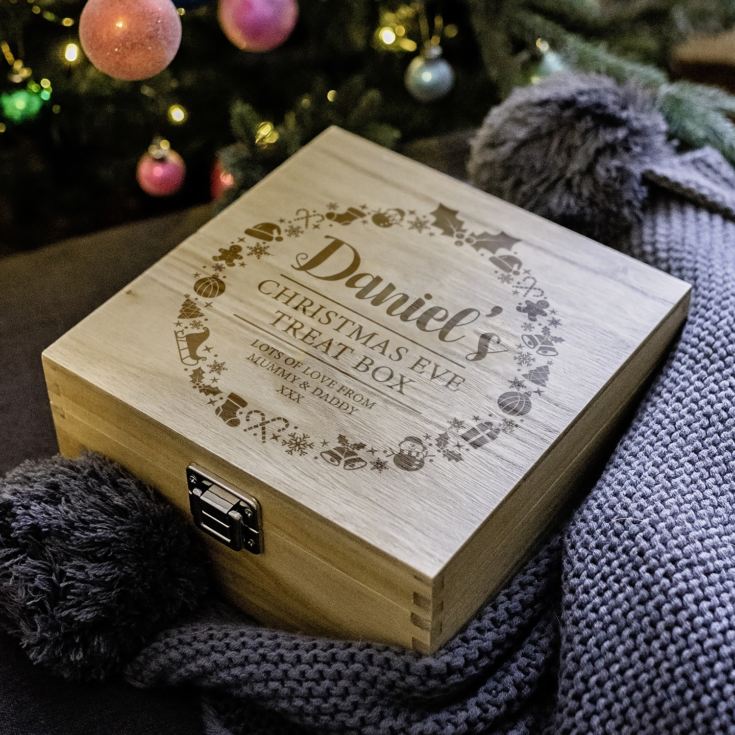 As Christmas approaches, get your Christmas Eve plans sorted with this stunning Engraved Personalised Christmas Eve Wooden Box Wreath Design.