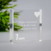 This gorgeous Engraved Seventh Wedding Anniversary Mantel Clock is handcrafted out of perfectly clear optical crystal and the lovely Seventh Anniversary design on the front of the clock makes this an ideal gift for any couple celebrating their Seventh year of marriage.