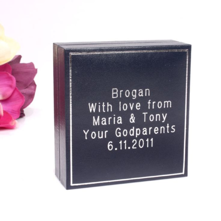The gorgeous locket comes presented in a luxury navy blue gift box which is embossed with your personalised message of up to 60 characters on the lid in silver text.