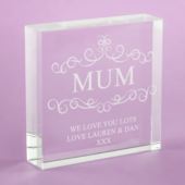 This Personalised 1st Mother's Day Glass Keepsake - Wreath Design is a wonderful Gift for the special first time mummy. Give her this beautiful gift to show her how special she is to you.