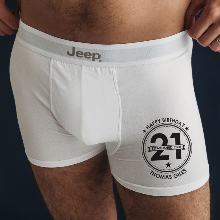 This pair of Personalised 21st Birthday Boxer Shorts make a fun gift for the birthday boy turning 21. Any 21 year old can use a pair of new lucky pants - and these have a great design to shout about this being his year!