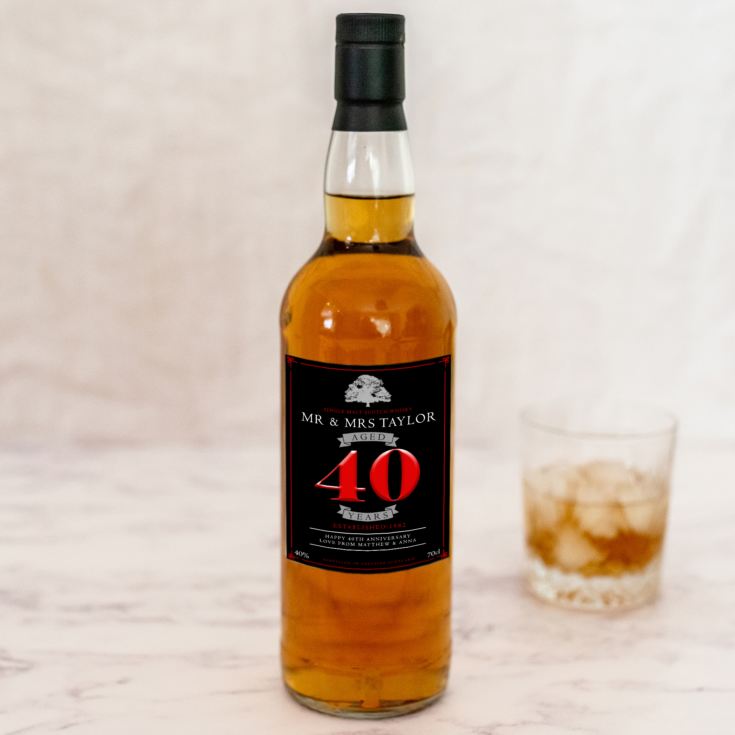 Customise the label of your whisky bottle with their names, wedding year and a thoughtful message from you to make this a lasting keepsake they will cherish on their 40th anniversary.