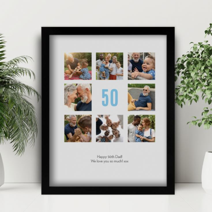 This stunning print features a bold "50" at the centre, surrounded by eight of your favourite photos, making it the perfect tribute to five decades of fun, laughter, and unforgettable memories!