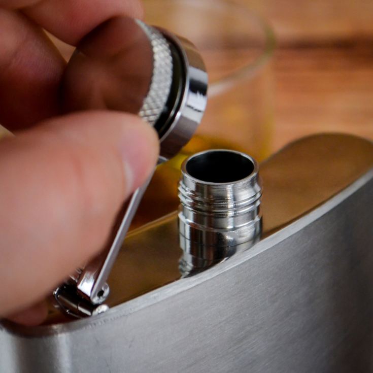 The flask has a retaining cap, meaning liquid is safe from leaking. The hip flask will be perfectly safe in a trouser or suit pocket.