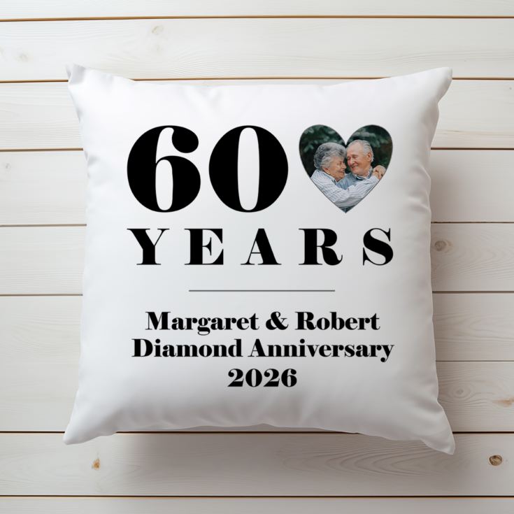 Celebrate 60 years of marriage with this lovely Personalised 60th Wedding Anniversary Photo Cushion. Add any photo to this lovely gift to make a truly personal present for a special couple.