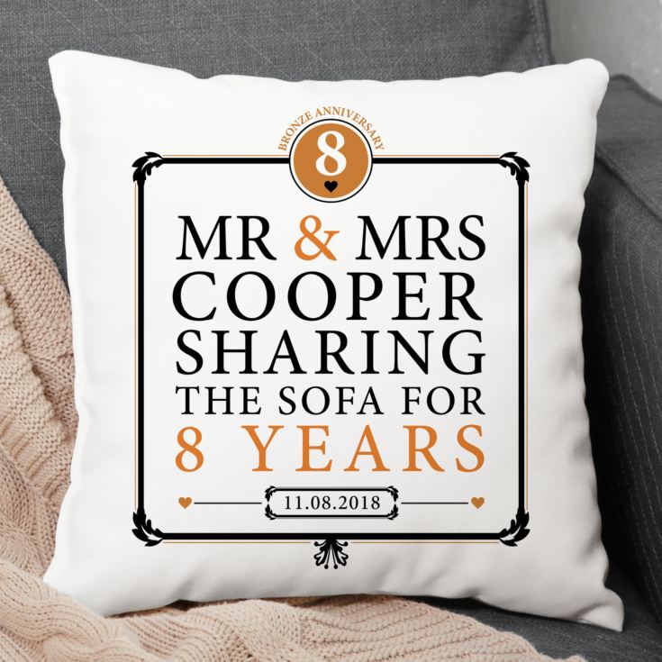 This Sharing the Sofa Personalised Cushion makes a lovely personalised gift for any special couple celebrating a their 8th wedding anniversary.