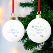 Perfect for a baby girl this hanging Christmas ornament makes a lovely keepsake to celebrate a Baby's 1st Christmas. The ornament is personalised with the child's name.