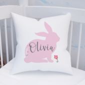 This cute egg shaped decoration features a rabbit silhouette in pastel pink, and your chosen name in a subtle grey, displayed across the centre in a flourishing script.
