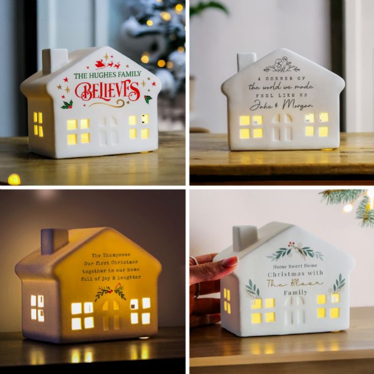 Bring warmth, charm, and a touch of magic to your festive décor with our Personalised Christmas LED Houses. Each ceramic house features delicate cut-out windows that glow beautifully when lit, creating a cosy and enchanting atmosphere in any room.