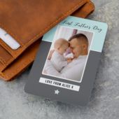 Featuring a slate grey background, your photo is printed in the top half, and framed in blue. Underneath is printed the message BEST DAD, made to stand out on its own white background. In the bottom half of the card, you can personalise the wallet card with your own words and message, meaning no two cards will ever be the same!