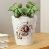 Give your Mummy this cute personalised Coaster as a little token gift to celebrate her first year as a new Mum. The coaster features a large flower that has a small heart in the centre and stripes on the petals. The flower sits on a pretty polka dot background and the words Happy 1st Mother's Day above in a bold font.