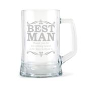 This hard-wearing glass tankard, with a suit design engraved at the centre, will put a huge smile on the groom's face on his wedding day.