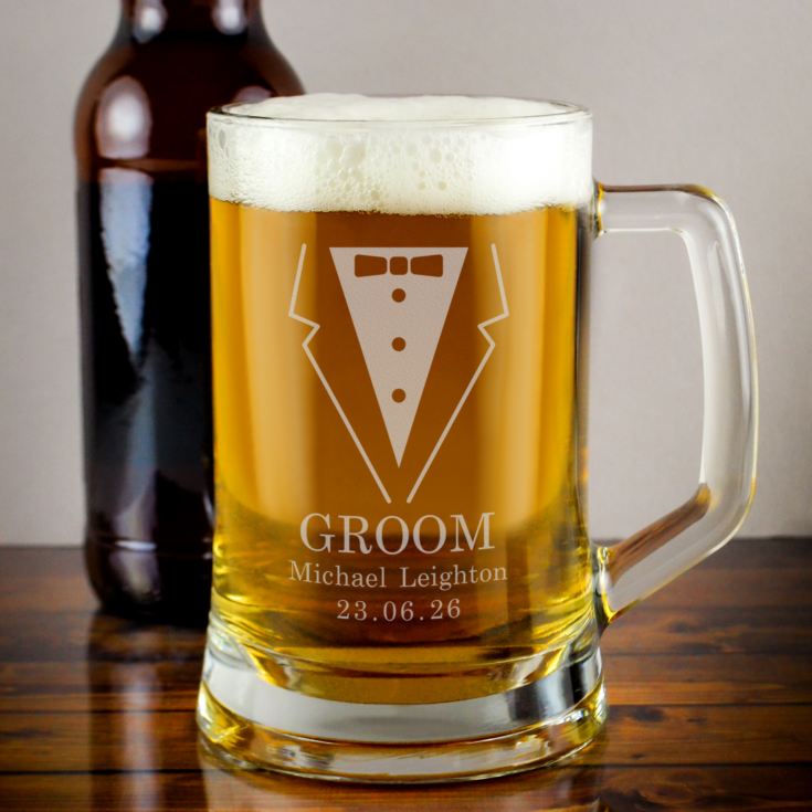 Looking for the perfect gift for your best friend becoming a groom? Our Personalised Groom Suit Glass Tankard could be the perfect quirky gift you've been looking for.