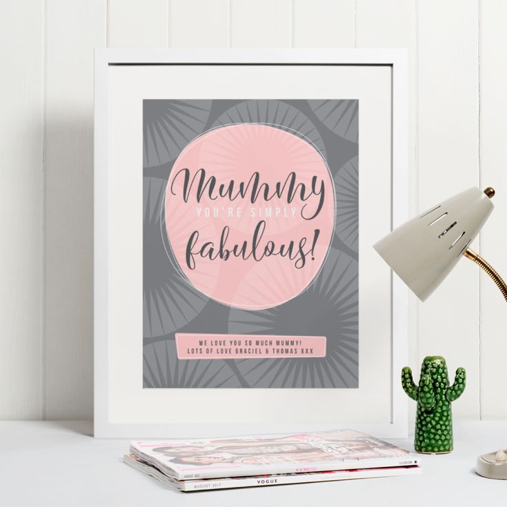 Tell your Mummy just how fabulous she is with this lovely personalised framed print. The print can be changed for any title such as Mum, Mummy or Mam.