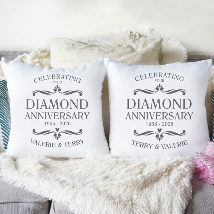 The attractive style will compliment most colour palettes, with the simple but classic design. The cushions make a stunning and unique gift for couples celebrating 60 years of marriage.