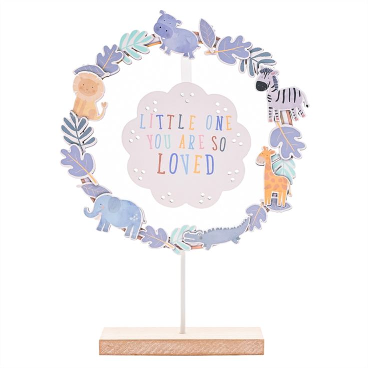 Remind your little one just how loved they are with the Standing Hoop Plaque – You Are So Loved. This charming freestanding hoop is crafted from wood and decorated with delightful animal characters that bring warmth, joy, and a touch of whimsy to any space.