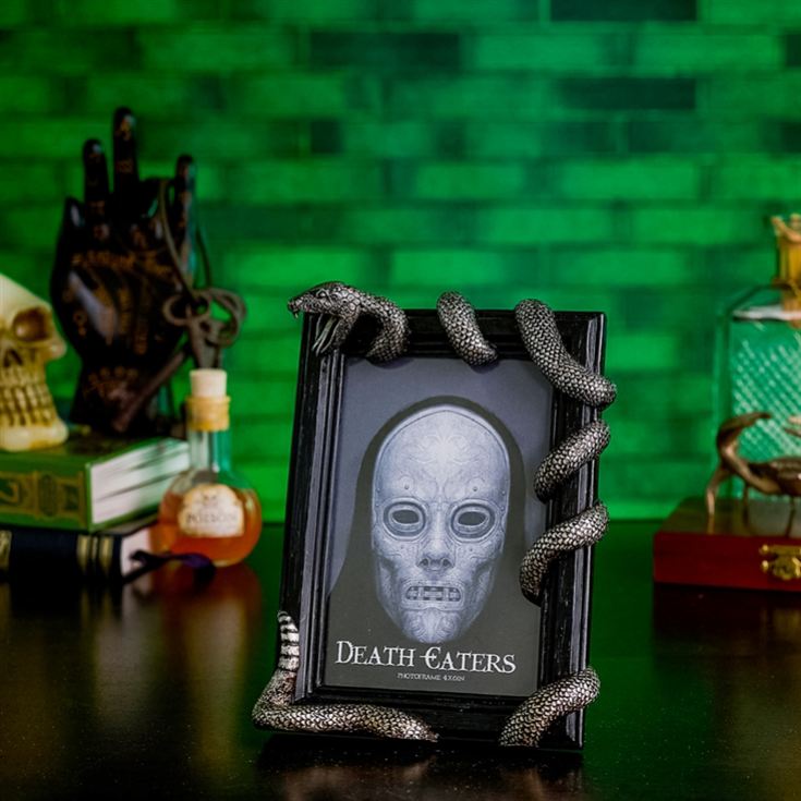 Designed as a self-standing portrait frame with a 4” x 6” aperture, it’s perfect for displaying a favourite photo while adding a touch of Dark Arts allure to any room. A must-have for Harry Potter enthusiasts, collectors, or anyone who appreciates unique wizarding décor, this frame makes a striking gift with a hint of danger.