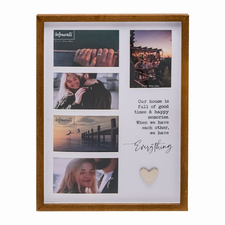 Showcase your favourite memories in style with the Moments Collage Photo Frame – Everything. Crafted from natural-finish wood, this striking frame holds five treasured photos – one portrait and four landscape – perfect for capturing life’s most special moments.