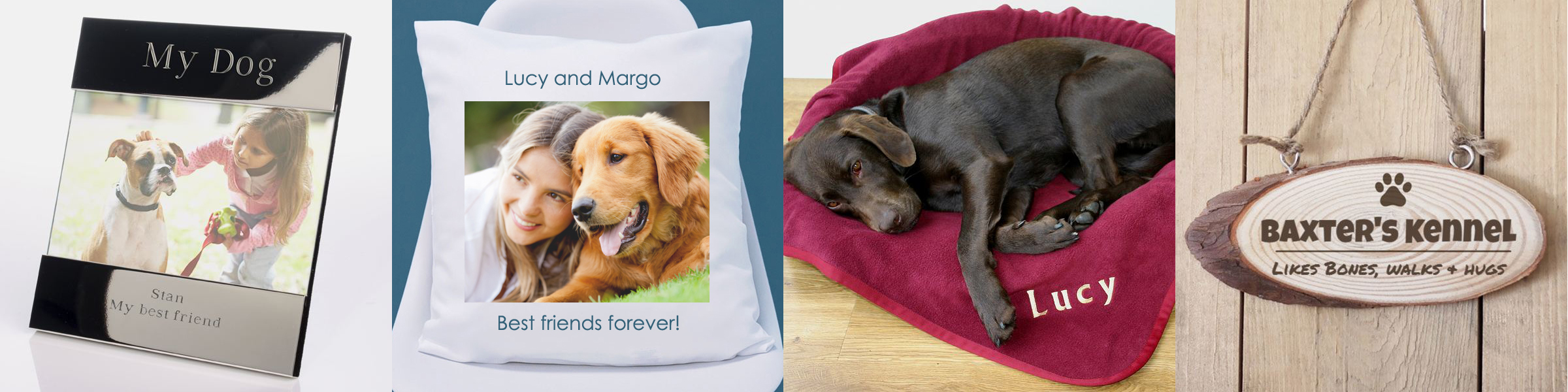 Great choices for Pet Gifts include 'My Dog' engraved photo frames that cleverly incorporate any personalised message about the recipient's dog, making this a wonderful personalised gift to give someone special.