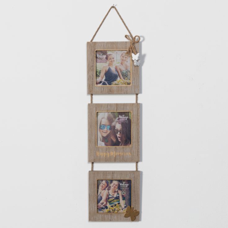 A beautiful 'Happy Memories' triple photo frame with three 4" x 4" apertures from the Vintage Boutique range.