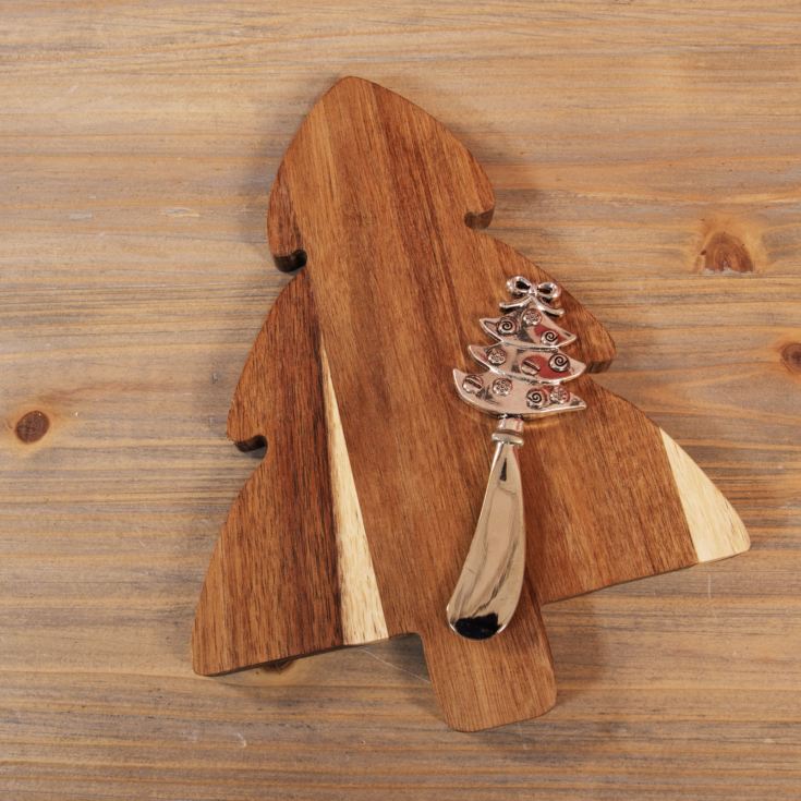 An acacia wooden cheeseboard and silver Christmas Tree knife from the irresistibly regal Royal Affair Collection: bringing merriment and majesty to your festive season.